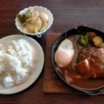 ハンバーグは出来たてアツアツで、ソースがグツグツしてました。もう〜最高です。